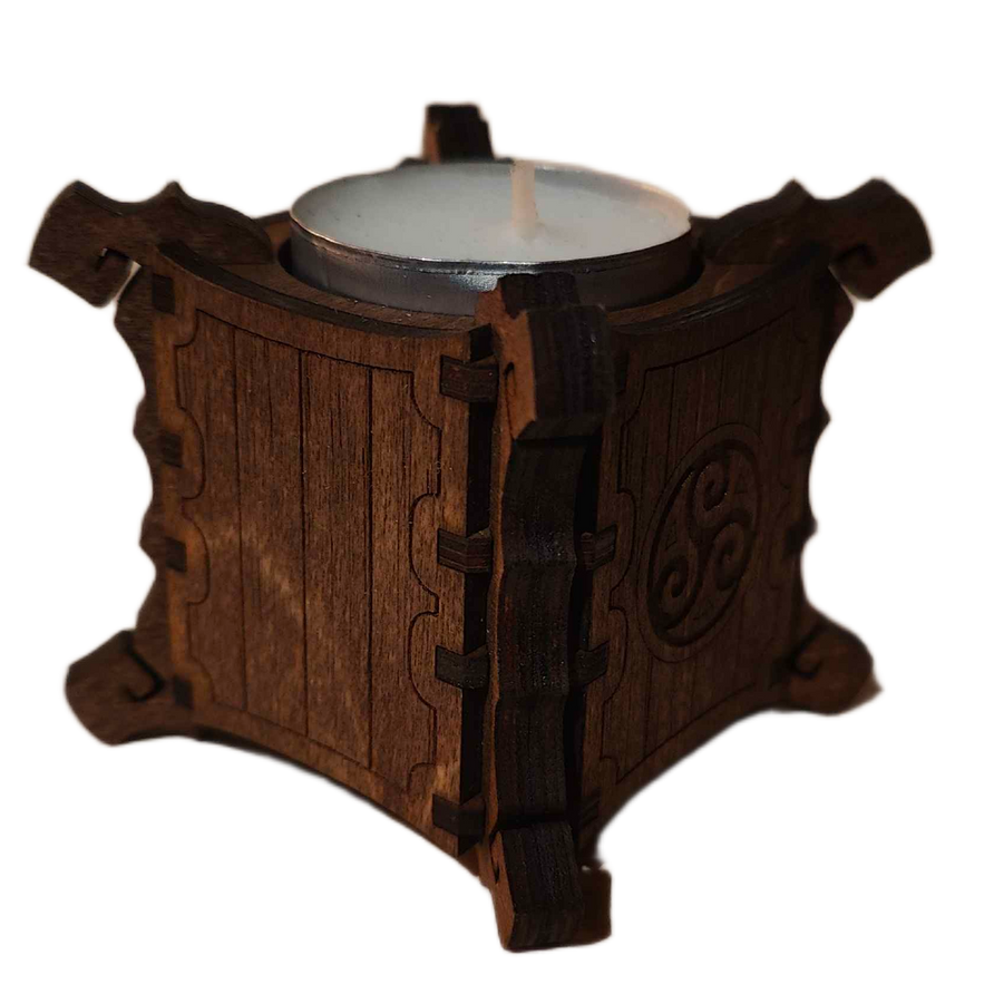 Bring varme og mystik til dit hjem med denne smukke keltiske lysestage. Udført i træ med præcist udskårne mønstre inspireret af oldnordiske og keltiske symboler.