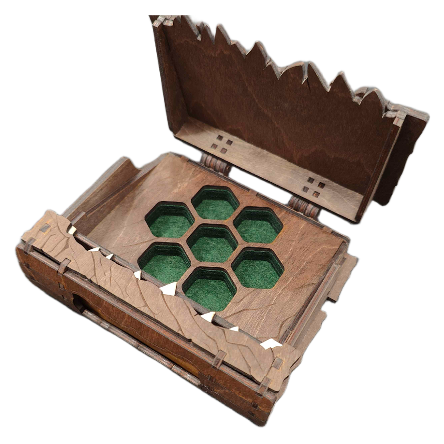 Giv dit bedst terningesæt et nyt hjem. Denne kasse beskytter på bedste vis dine terninger og holder sig lukket under alt transport. Udstil den på hylden som dekoration eller blær dig foran din vennegruppe med den fedeste dice box.
